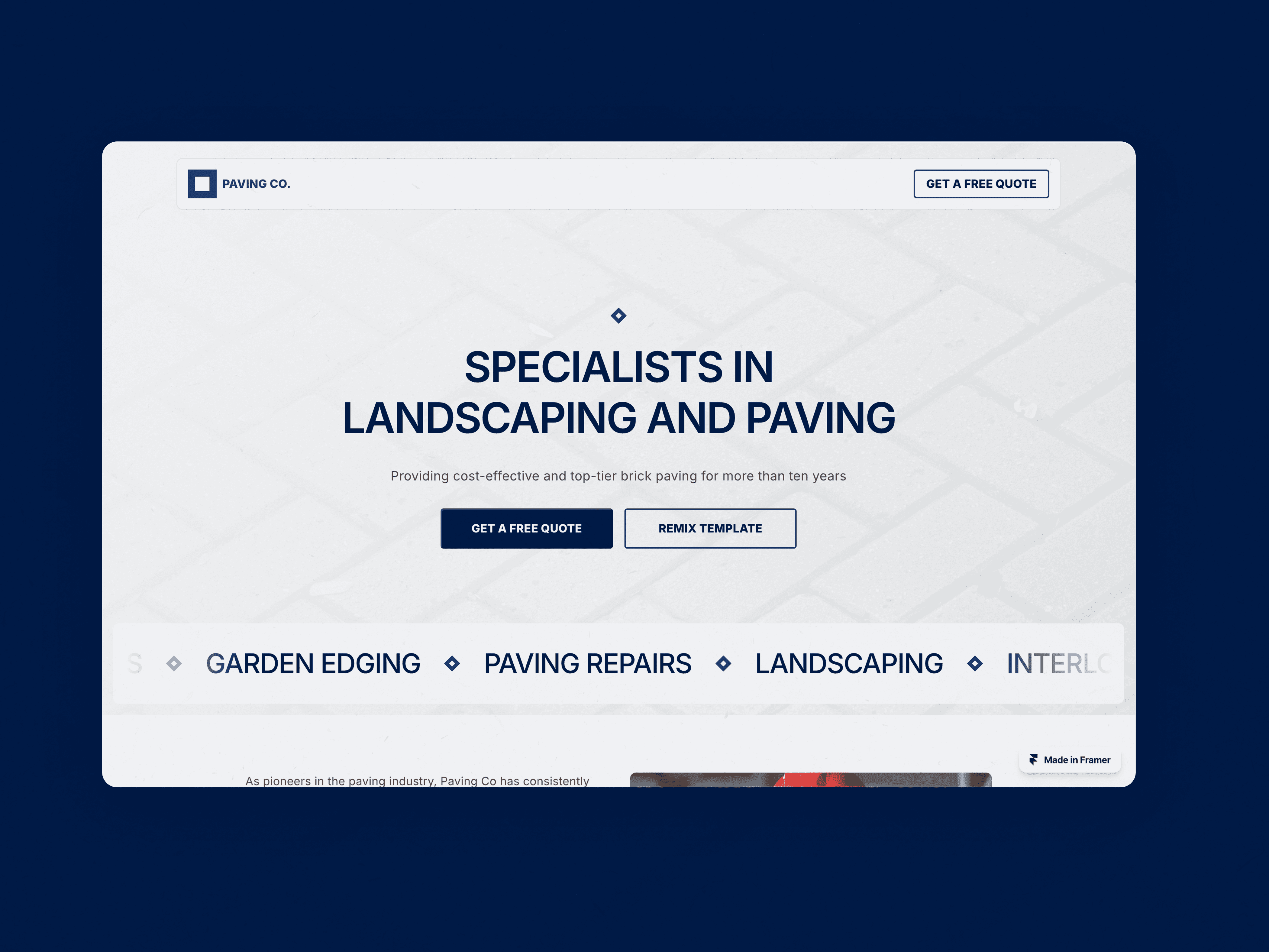 Paving Co, the Framer template designed specifically for paving companies seeking a robust online presence.